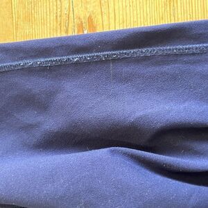 Features: Basic pair of athletic leggings. Stretchy material. Logo at the back of the waistband. Slightly cinched at the bottoms of the legs. Small pocket at the front of the waistband.