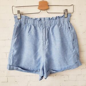 Carve Designs Journey Linen Blend Shorts Size 0 Chambray Blue Cuffed Coastal. Good pre-owned condition, no flaws.