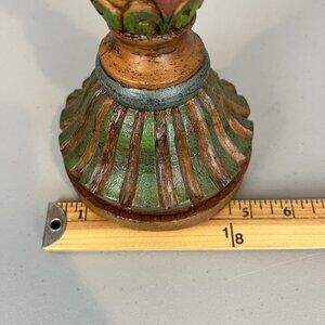Carved Candle Holder Colorful Wood Slight Gold Tones 12”