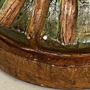 Measures just over 12" tall. Felt covered bottom. There is one small white speck on a green section near the bottom - see photos. I couldn't find a maker's mark or brand name.