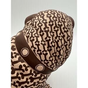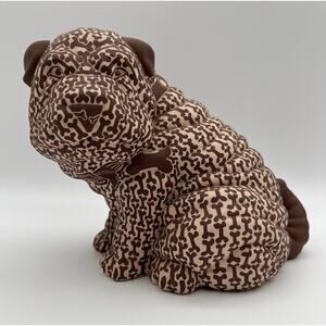Beautiful carved ceramic bulldog puppy figurine with brown dog bones pattern. Measures approximately 7” tall, 7” long and 5” wide. Good condition, no chips or cracks. Signed and dated 1991.