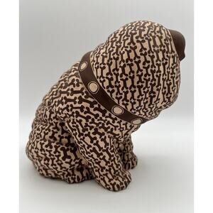 Carved Ceramic Bulldog Puppy Figurine with Brown Dog Biscuit Pattern 7” Signed