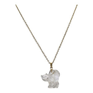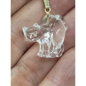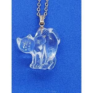Carved Clear Cat Pendant Necklace Cat Lady Cat Lover Glass Crystal Kitty Charm