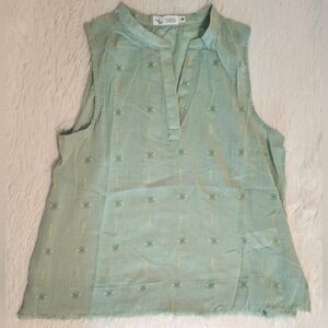 This layer-ready gauzy sleeveless top is a flyweight we can rely on, perfect for desert wanderers. V-neck, frayed drop tail hem.