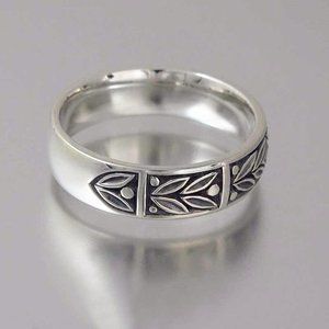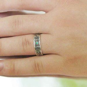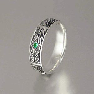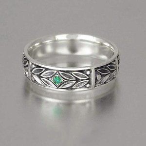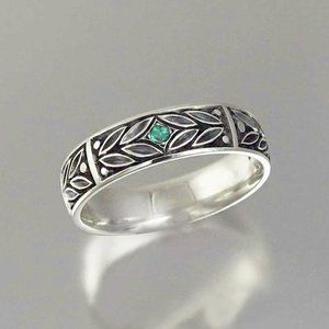 💍 Carved Ethnic Retro Leaf Tiny Green Zircon Ancient Silver Vintage VIP349