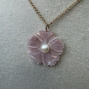 Carved Flower Shell with Freshwater Pearl Center Pendant Necklace