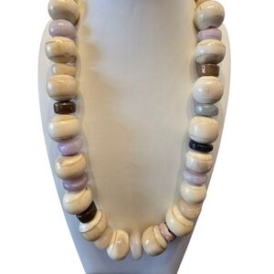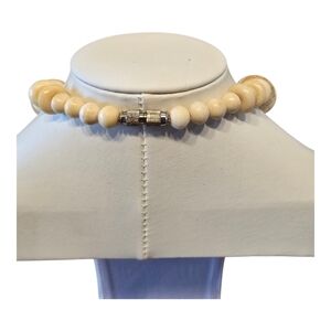 Carved Gemstone Bone Round Bead Vintage Necklace