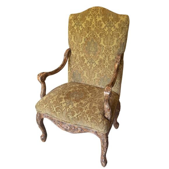 Carved Italian Provential Style High Back Arm Chair Distressed Finish