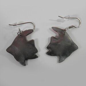 Carved Mosaic Colored Mother of Pearl Tropical Fish Blue Shaped Hook Earring MOP