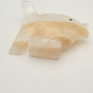 Carved Onyx Stone Fish Figurine Ivory & Tan, Hand Tropical Fish Sculpture