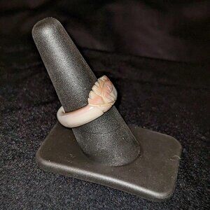 Picturing the Carved Ivory and Maroon Toned Ring.