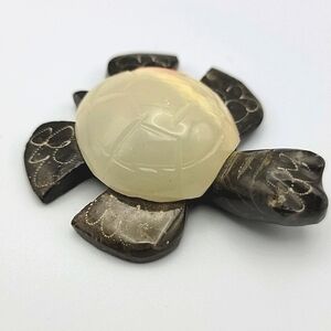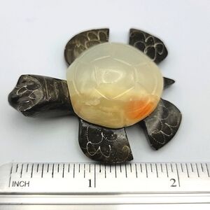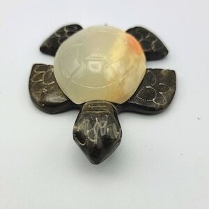 Beautiful carved little stone turtle figurine with a cream and black finish. Unique and artistic design. Perfect for your turtle collection.
