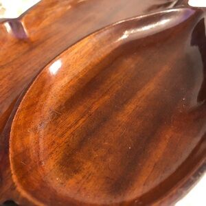 Gorgeous shimmery hand carved tray in the shape of a leaf. Perfect functional bohemian decor. A great spot to empty your pockets by the front door or catch your jewelry in the bathroom. In excellent condition, though there’s a couple marks on the bottom and a spot on the side (as pictured) not noticeable unless flipped over. Approximately 16” long