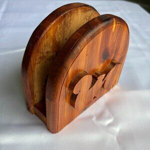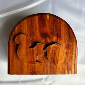 Carved Wood Squirrel Napkin Holder