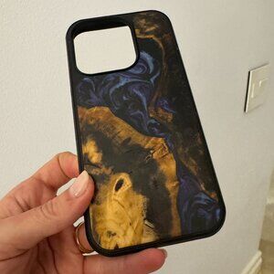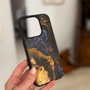 Carved Wood and Resin iPhone 15 Pro Phone Case. Moderately used but in decent shape. Some signs of wear.