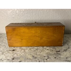 Carved Wooden Divided Tote Mail Storage Box Vtg