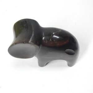 Vintage carved wood elephant figurine. Measures about 3.5 inches tall, 5 inches long. Made in the Philippines. Shows some surface wear such as scuffs and scratches, but still displays well.