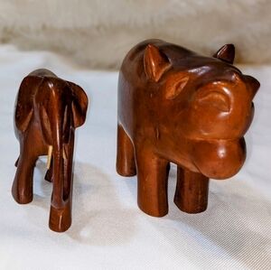 Picturing a pair of Carved Wooden Elephant & Hippo.