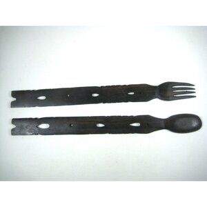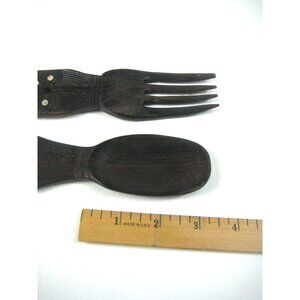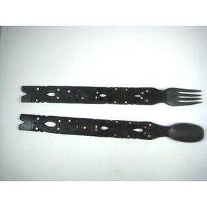 Carved Wooden Fork Spoon Salad Serving Set Tribal Home Kitchen Decor Inlay