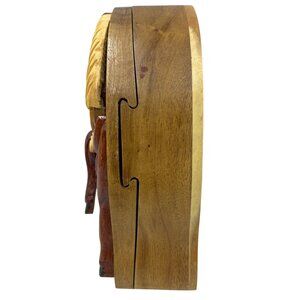 Carved Wooden Horse Puzzle Box With Velvet-Lined Secret Hidden Compartment