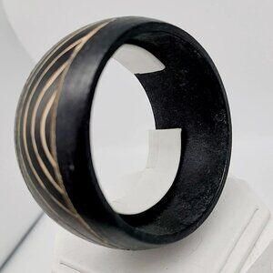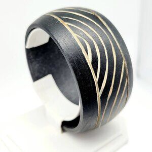 Carved Wooden Wide Bangle Bracelet Black & Natural Bohemian Tribal Stackable 8"