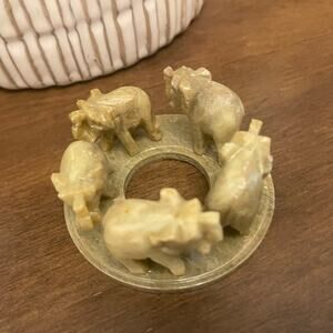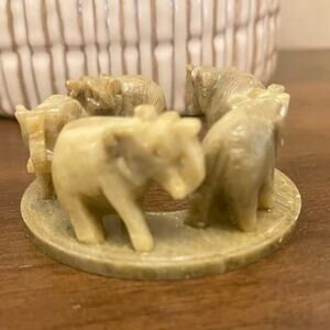 Carved onyx stone circle of 5 elephants Very good condition All hand carved Vintage 3”