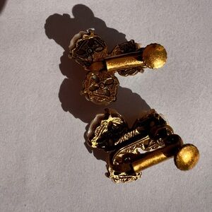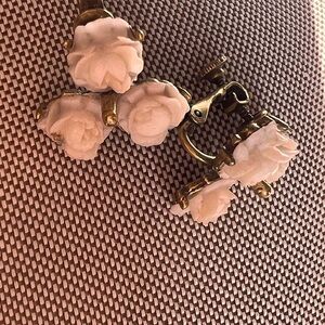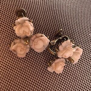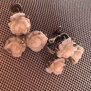 Carved pronged Vintage Rose clip on earrings Cream ivory Gold Floral Earrings