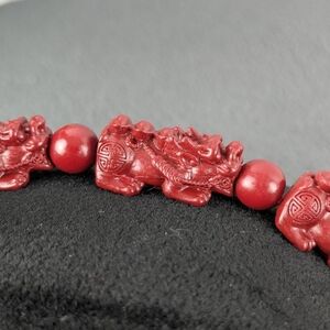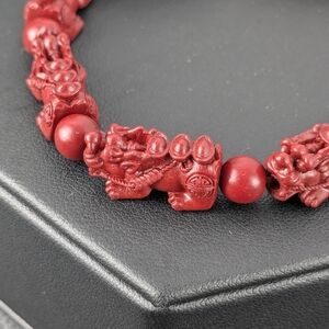 Carved red cinnabar stretchy bracelet