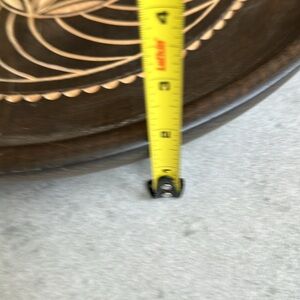 A wood platter, the pattern is from carvings. Has rustic natural tree grains and knots. This was meant to be used as a tray, but it has a hook inserted on the back to used as wall decor, so you can use it for wall display or as a tray. About 15.5” diameter , 1.75” deep. 2lb 12oz