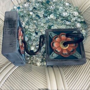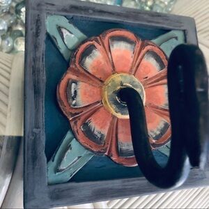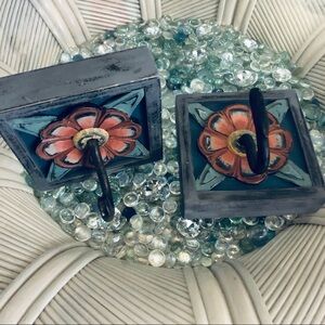 Two carved flower hand painted wall hooks. Large solid hooks that feature distressed ombré flowers. Have two slide in hook nooks on the back for no worry no wiggle attachment. These are a CollectedCloth original by yours truly. Hooks originally by pier 1, painted by me 🤗