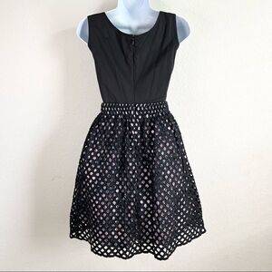 Carven Fit & Flare Mini Dress Women's 34 (US 2) Black Lace Eyelet Cotton Floral