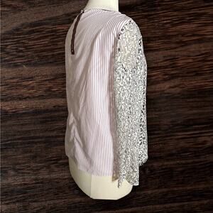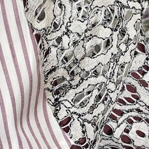 Description: Lace Front Blouse lined in Deep Burgundy, Back Striped Poplin lined in Ivory.
