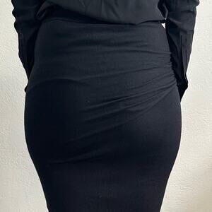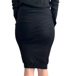 Carven Knit Pencil Skirt Black size S Gathered Side Stretch Knee Length