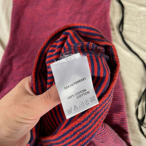 Carven heavyweight cotton maxi dress in red and blue stripes. Sleeveless tank style with a sweater feel to it. Side zipper with long pull attached. In excellent condition- the material tag is partially falling off. Size women’s small. Approximate measurements: