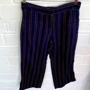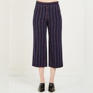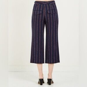 Carven Striped Cropped Gaucho Navy Cotton High Rise Trouser Pants Sz 38