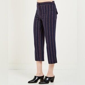 Carven Striped Crop Navy Cotton High Rise Trouser sz 38