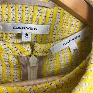 Carven Two Piece Yellow Tweed set size FR 40 /USA 8 zip up jacket and dress