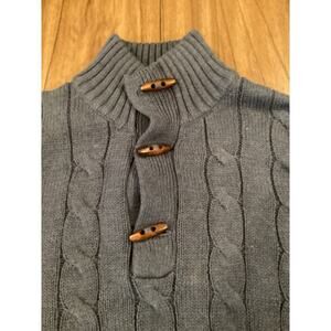 Carven heavy Cable knit cotton blue toggle button pullover Mockneck sweater