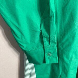 Caryn Lawn Preppy Gameday Back Stripe Mini Shirt Dress Womens One Size Green NWT