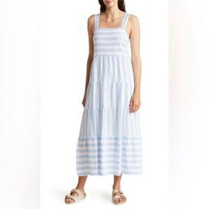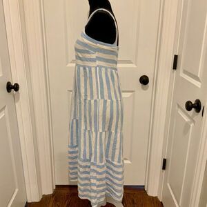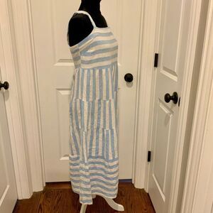 Casa Cabana Blue White Cabana Stripe Linen Blend Smocked Midi Sundress Small