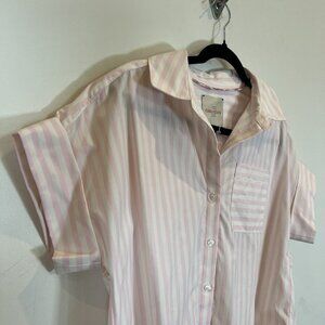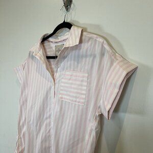 Casa Cabana NWT Darcy Top Dusty Pink Ivory Stripe Button Cap Sleeve Oversized S