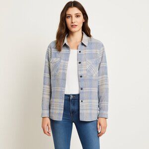 Casa Cabana Plaid Shacket – Blue Beige Grey Overshirt Medium Fall Transitional