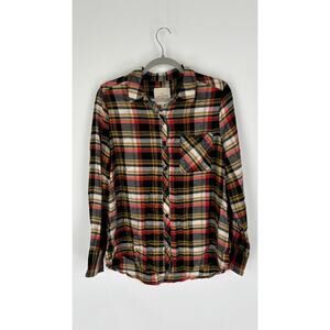 Casa Cabana Womens Wendy Mustard Greens Plaid Button Up Shirt Size Large NWT