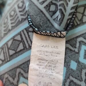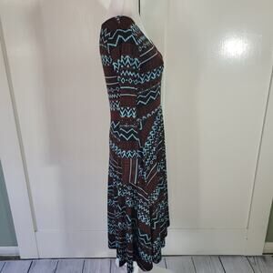 Casa Lee Size M Long Sleeve Geometric Bodycon Midi Dress V-Neck Teal Brown