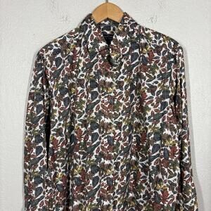 Casa Moda Long Sleeve Button Down Shirt Fall Leaf Print Casual - L