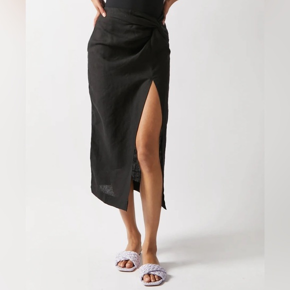 Casa | Raki Gaby Black Linen Knot Front Side Slit Midi Skirt EUC Size Medium