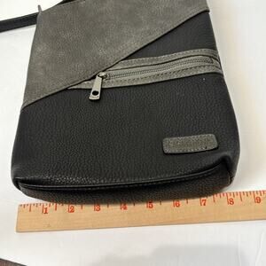Casa diNova Vegan Crossbody Purse Black and Gray Pebbled Leather. Strap Adjusts