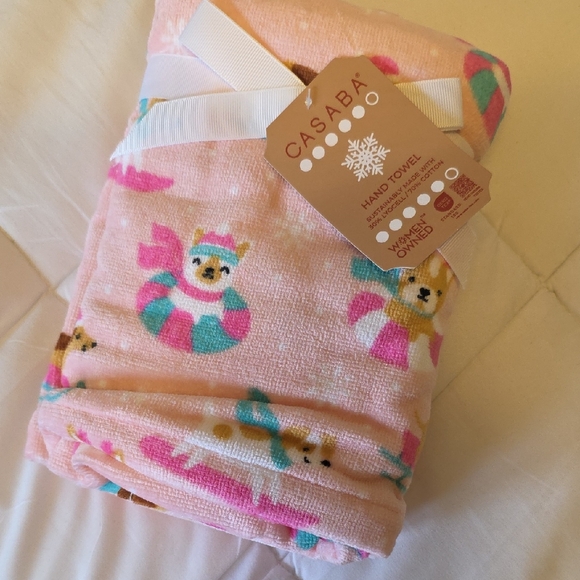 Casaba set of 2 hand towels in pink with cute dachshund, corgi, etc dog print! perfect for adding a playful touch to your bathroom this holiday.