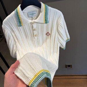 Casablanca Men New Season Rib Boucle Polo Shirt Large Size