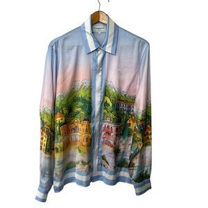 Casablanca Silk Landscape Shirt Men’s Size Medium Green Brouillard Sur Le Lac